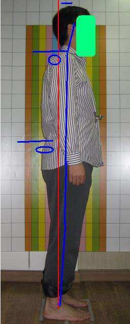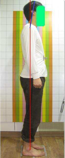 전후면, 측면 사진을 찍어 인체 중심선을 그어보면 직관적으로 몸의 좌우, 전후가 바르지 않다는 것을 볼 수 있습니다.