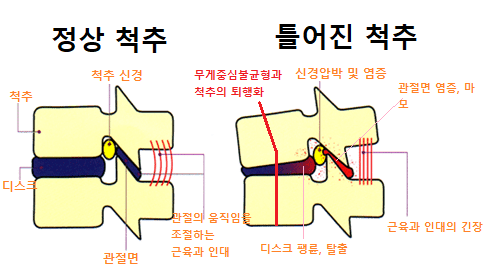 척추의 이상은 신경계 기능을 과흥분 시키거나 감소시킴