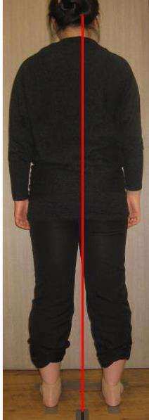 인체 중심 중력선은 뒷 모습에서 골반의 중앙에서 척추 선을 따라 머리의 한 가운데를 통과해야 합니다. 이 중심선이 맞다는 것은 좌우 균형이 잘 잡혀 있다는 것인데 생각보다 적지 않은 수의 환자분들의 체형 분석에서 좌우 균형이 맞지 않는 경우가 많습니다.